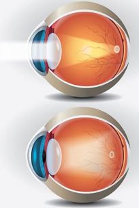 בתמונה העליונה הדמיה של עדשה בריאה ובתמונה השנייה הדמיה של עדשה עכורה הסימנים לירוד בקרב ילדים כוללים: